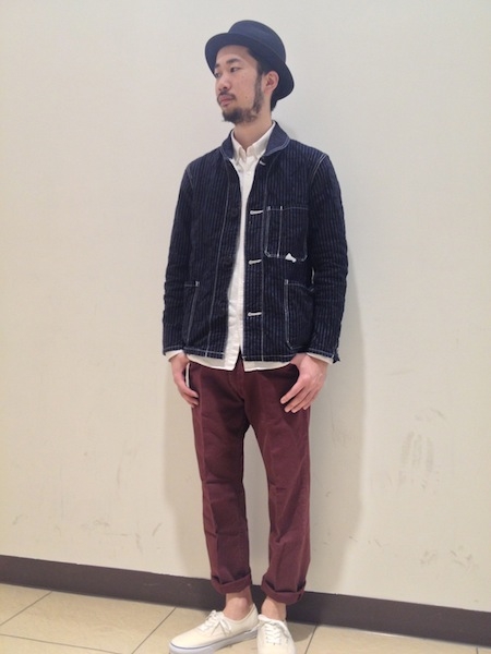 パンツはTOWNCRAFT/CHINO 7/8LEG PANTSのワインで男っぽく。