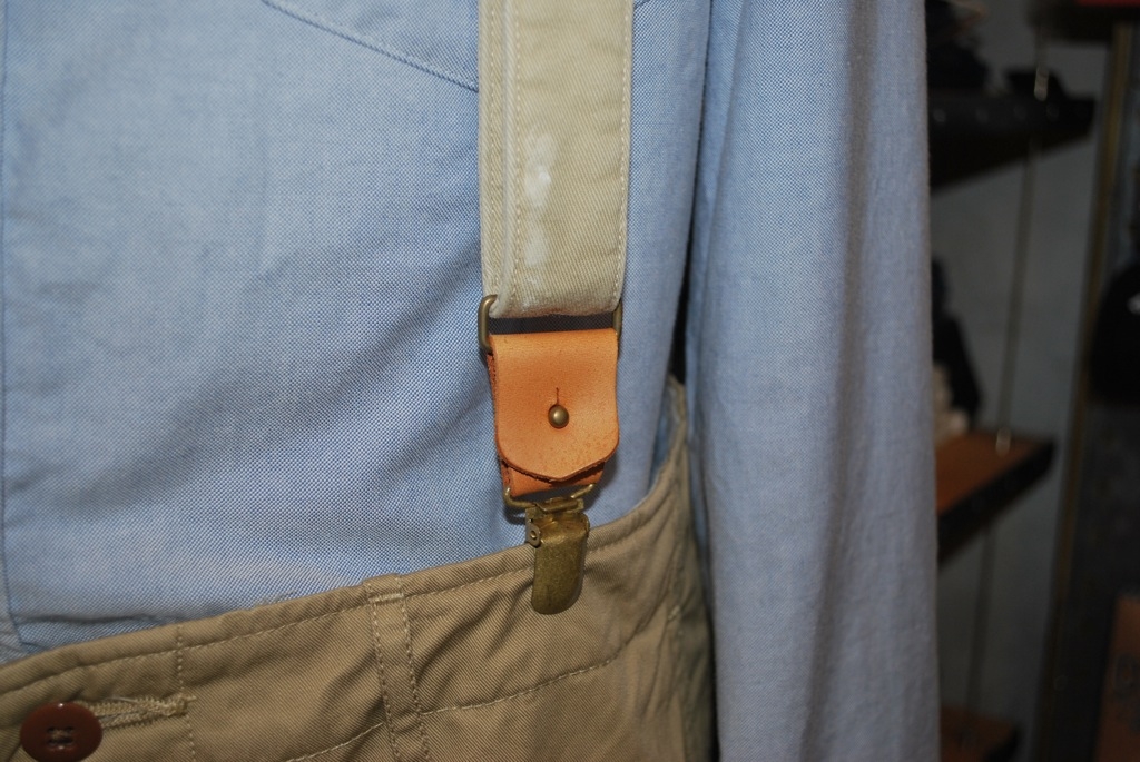 リペア加工が加えられたサスペンダーは、クラシックな雰囲気があります。